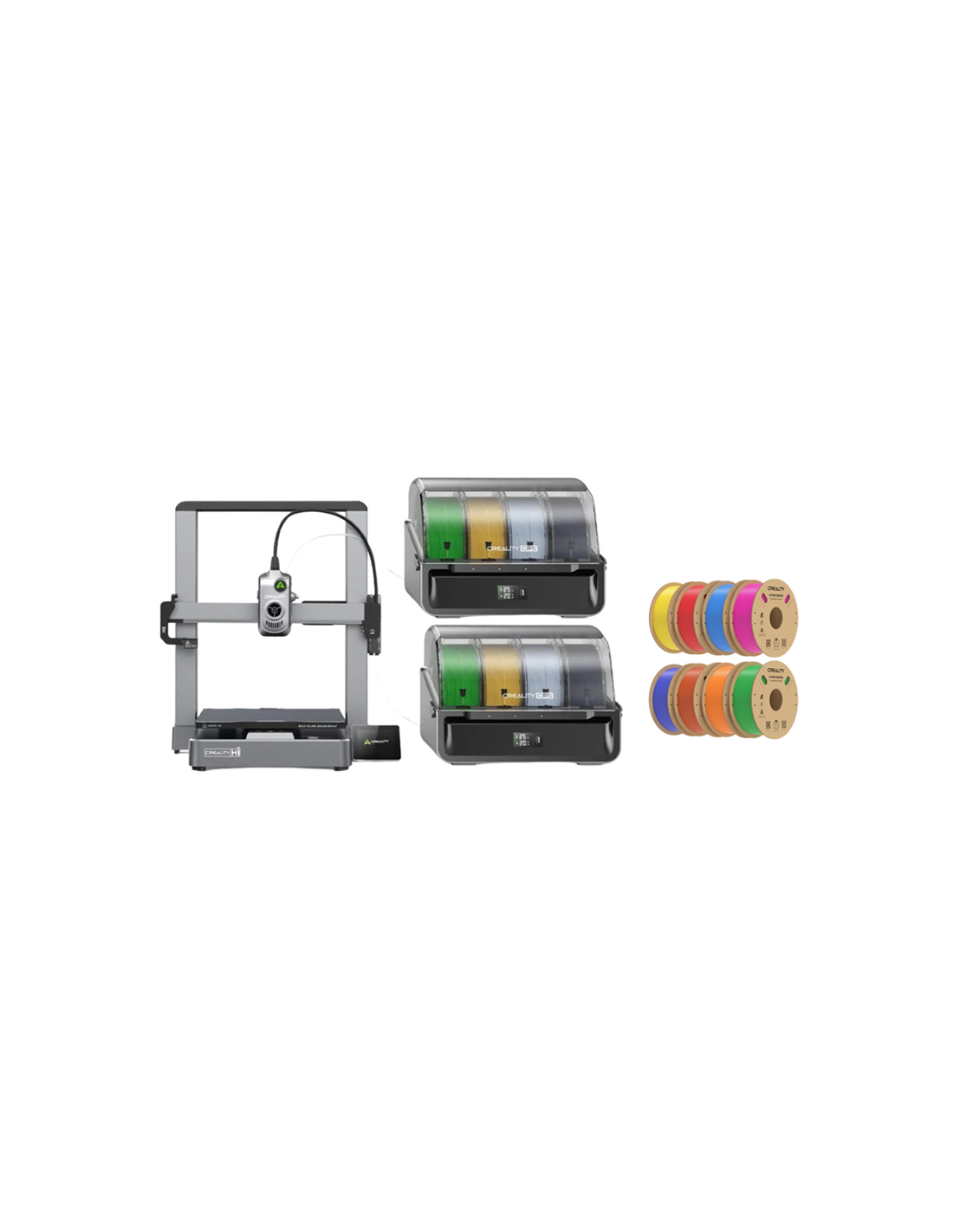 Upgrade to true multicolour 3D printing with the Creality Hi Combo 8-Colour Hyper PLA Bundle, complete with an additional Creality CFS unit and 8 rolls of genuine Creality Hyper PLA filament. This all-in-one package gives you everything you need to start printing in 8 colours simultaneously — right out of the box.