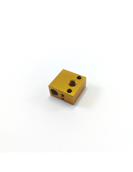 | Anodized Gold Heater block designed to be used with the Creality3D Red Heatsinks – They can be used as spare parts to the CR and Ender 3 Range or on their own, however we highly recommend they are only used with the Creality3D Read Heatsinks as their screw holes are slightly different then regular heater blocks. Dimensions: Heat Break & Nozzle Thread Size: 5mm Heater Cartridge Size: 6mm Size: 20mm x 20mm x 10mm |